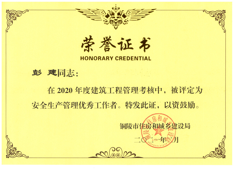 銅陵市2020年度優(yōu)秀建造師(程宏雨)