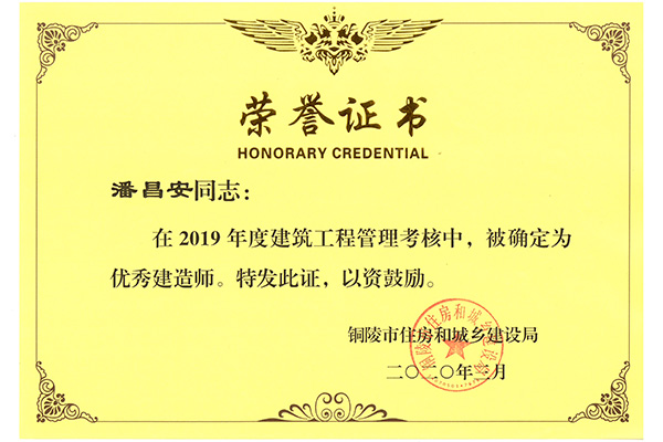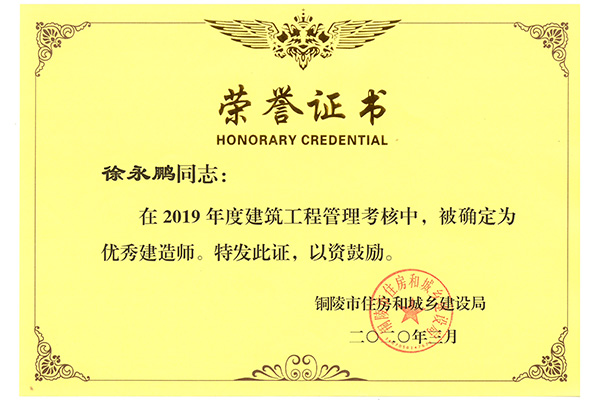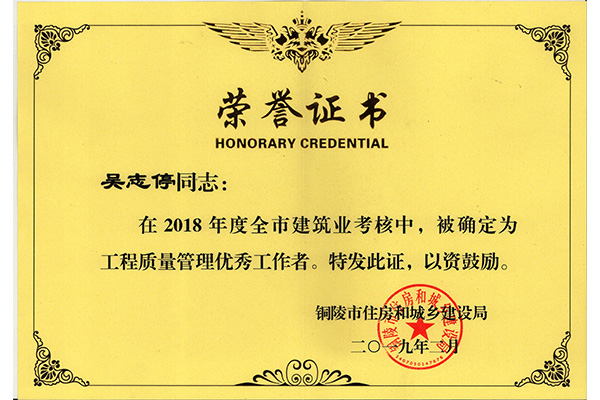 吳志停工程質(zhì)量?jī)?yōu)秀工作管理者